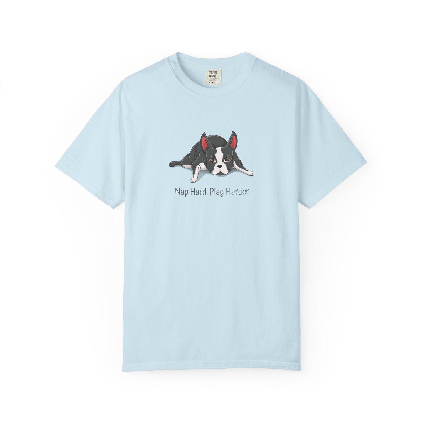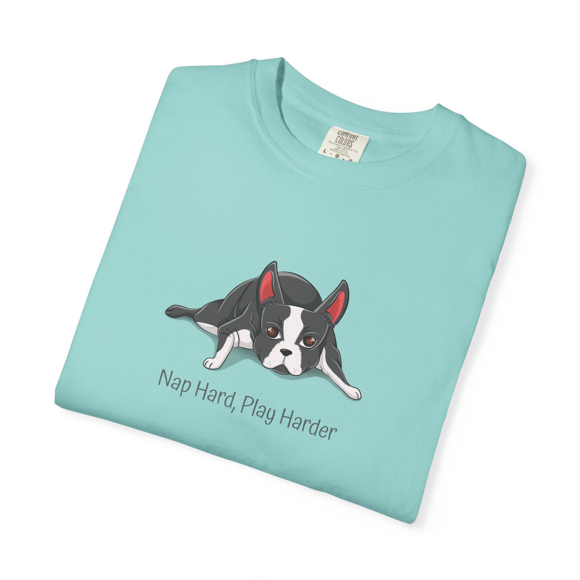“Nap Hard, Play Harder” Boston Terrier - Unisex Garment-Dyed T-shirt