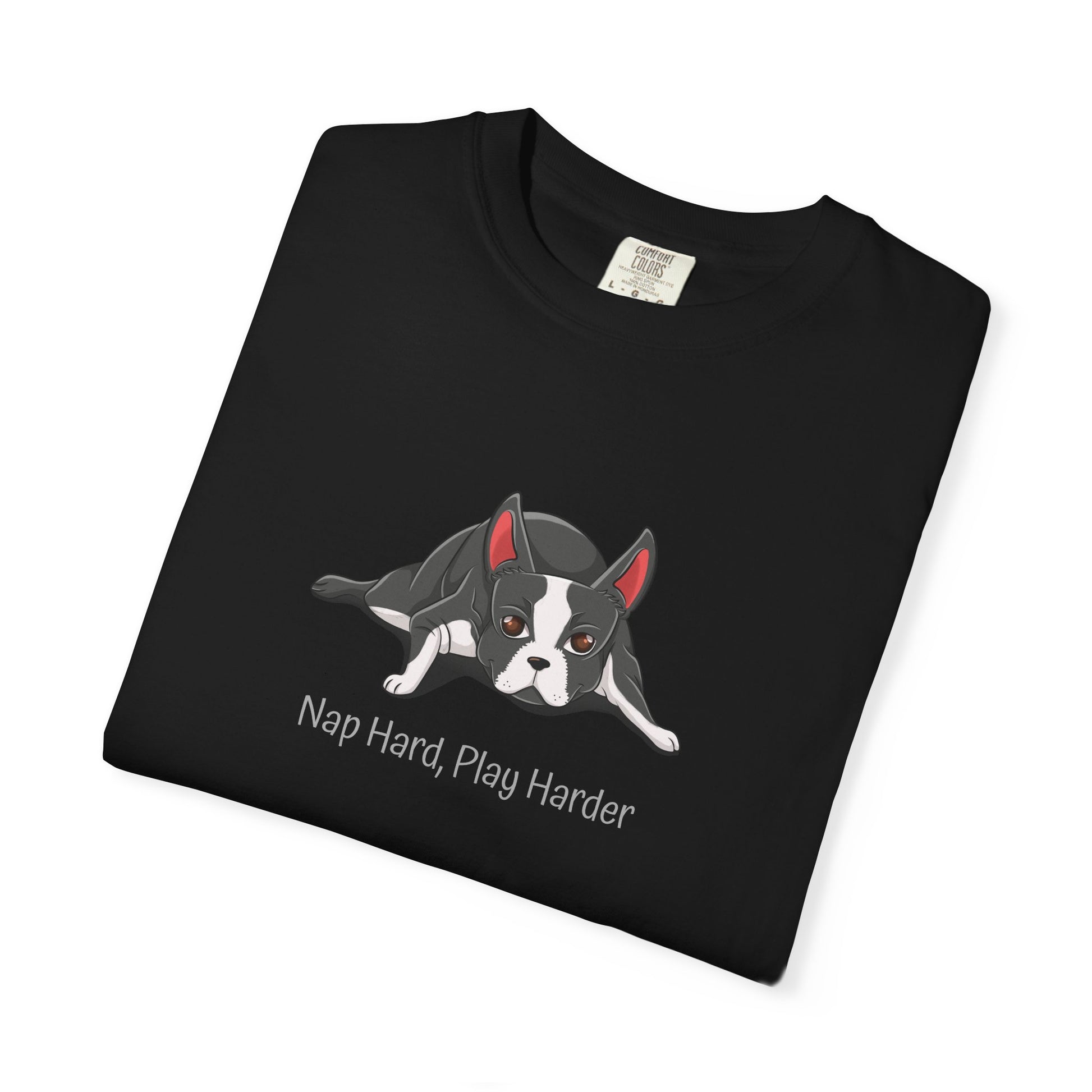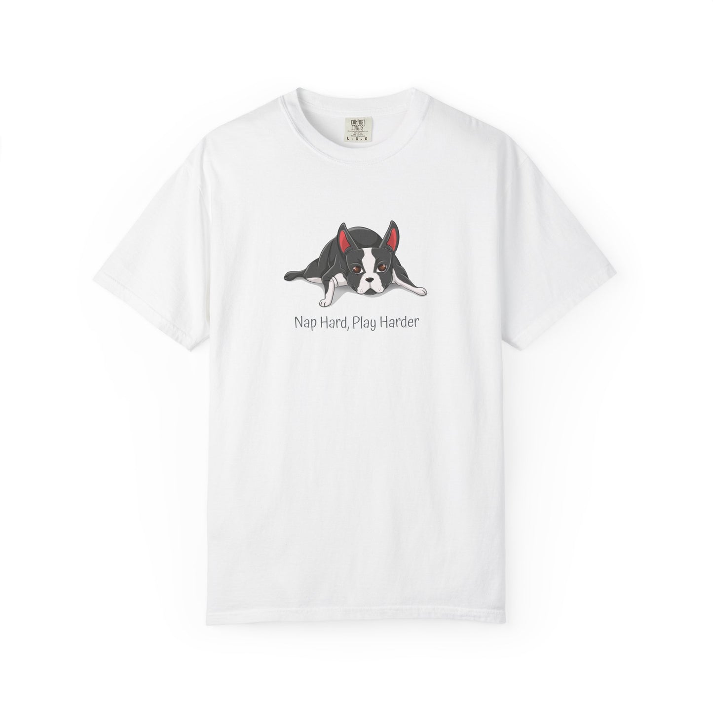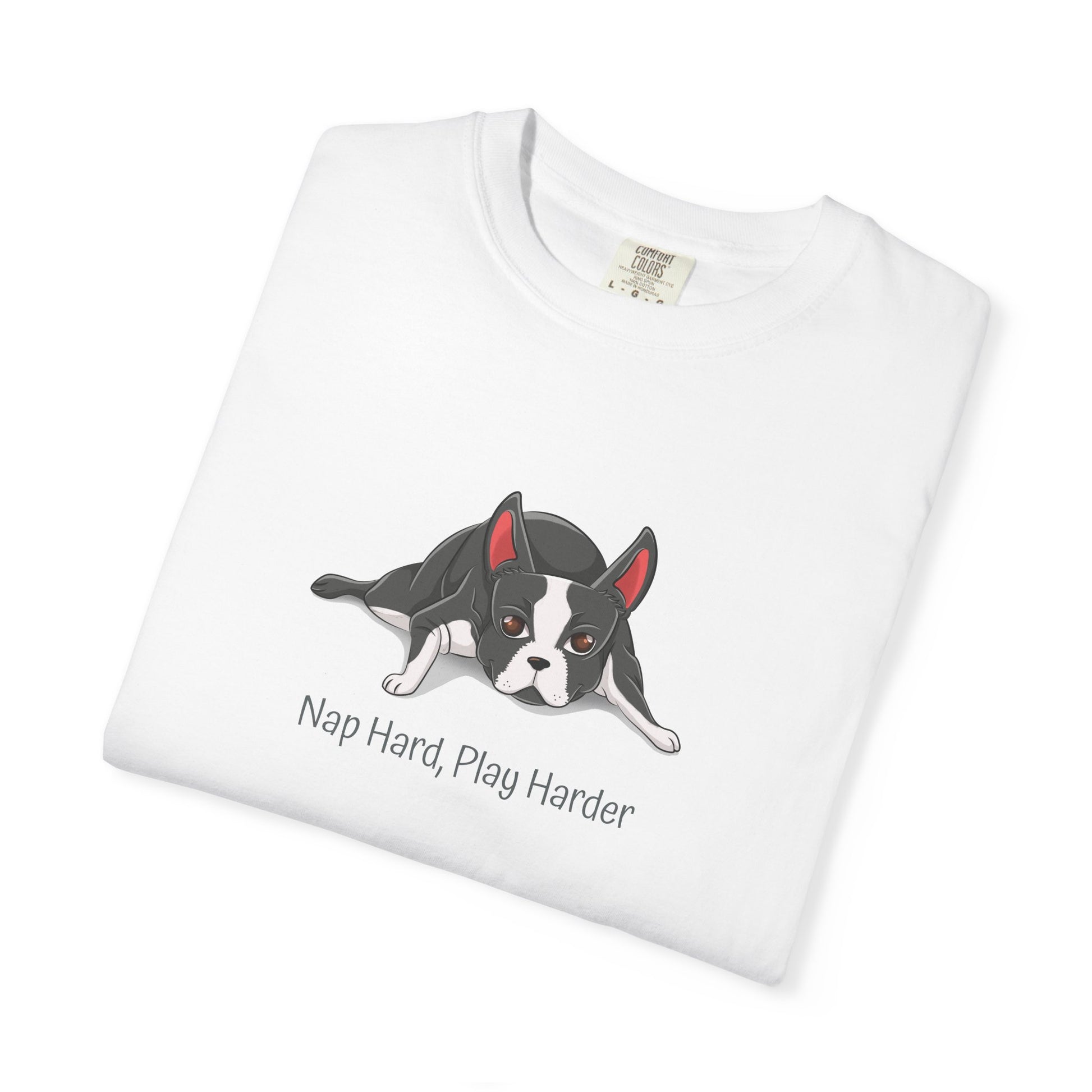 “Nap Hard, Play Harder” Boston Terrier T-Shirt 🐾✨